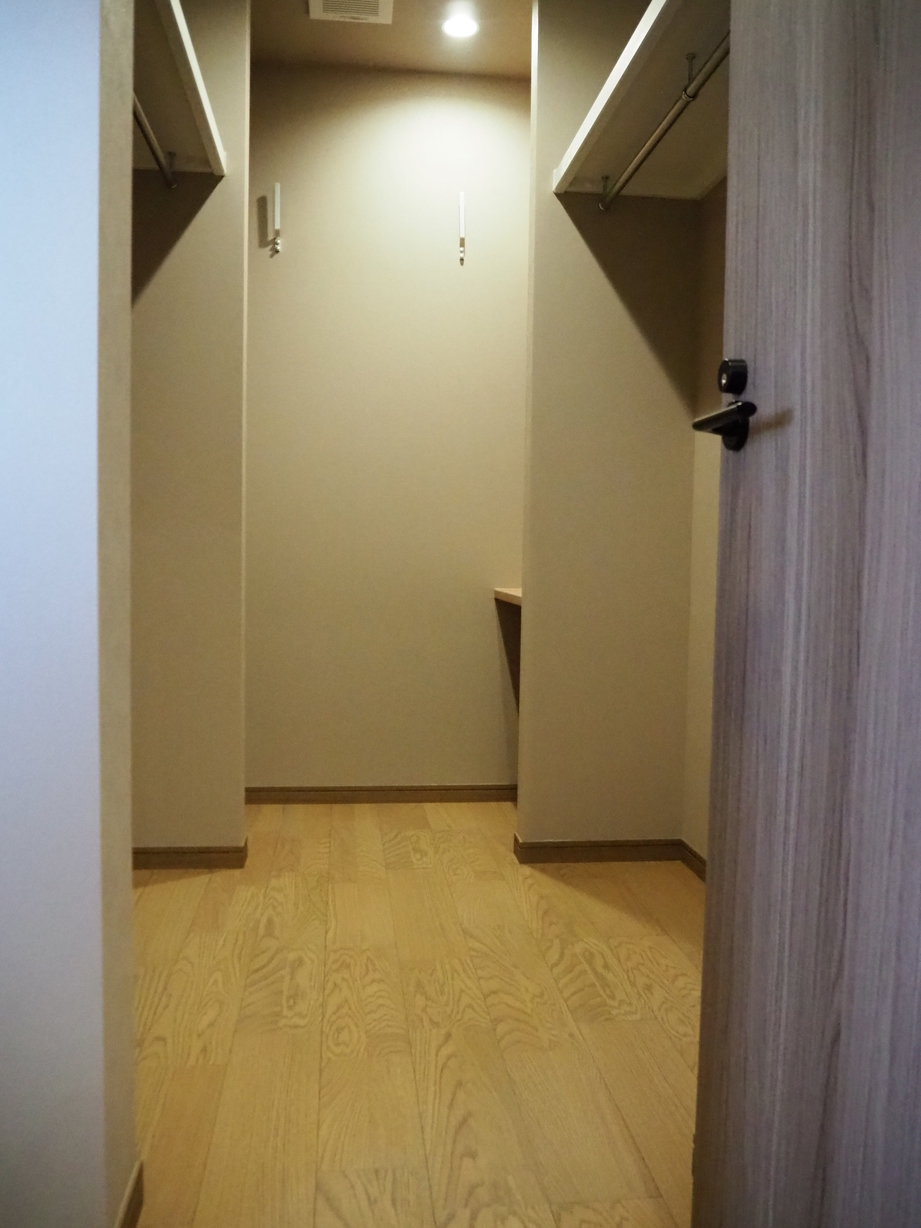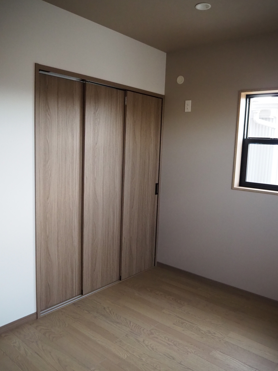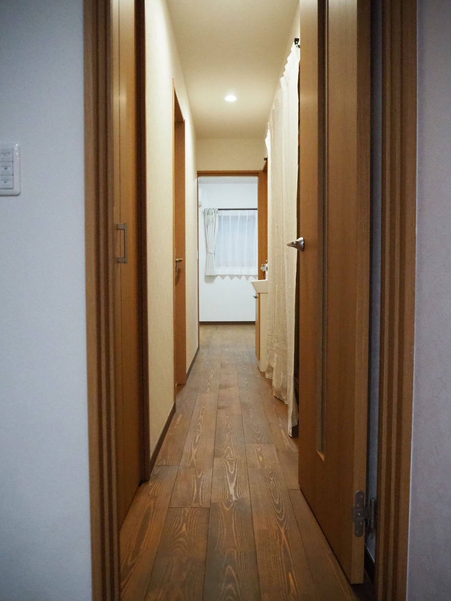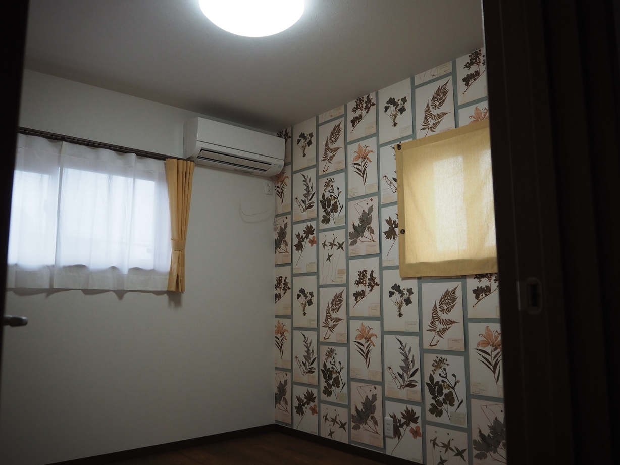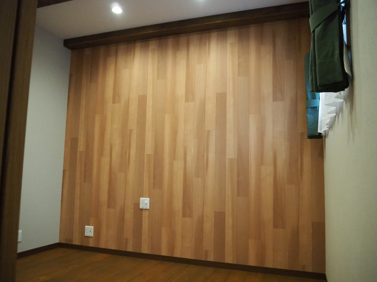 各室は収納を要所に配し、木目で統一しながら、アクセントクロスで遊び心を添えました。