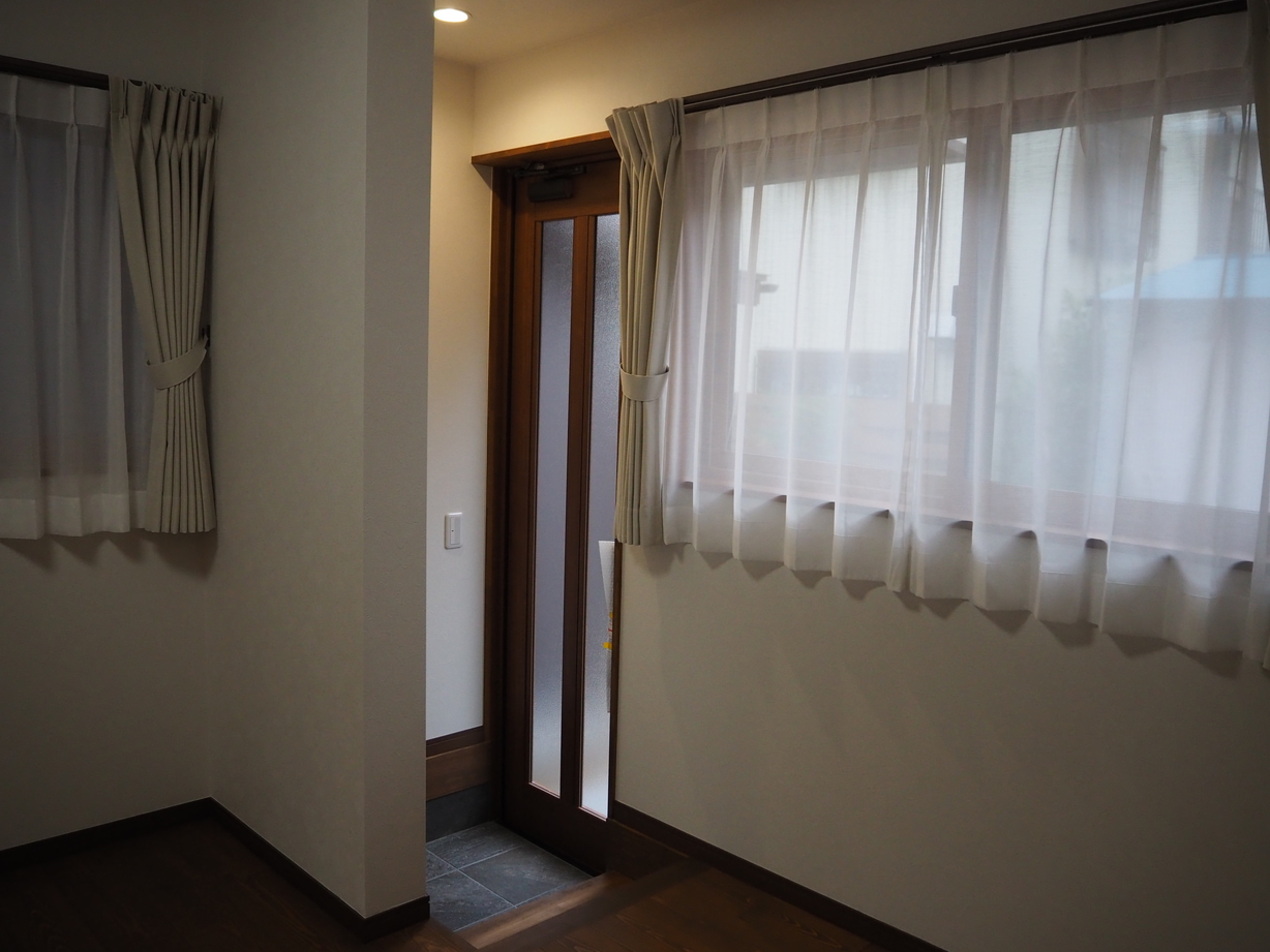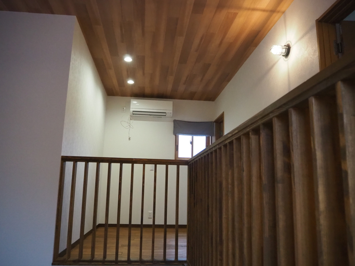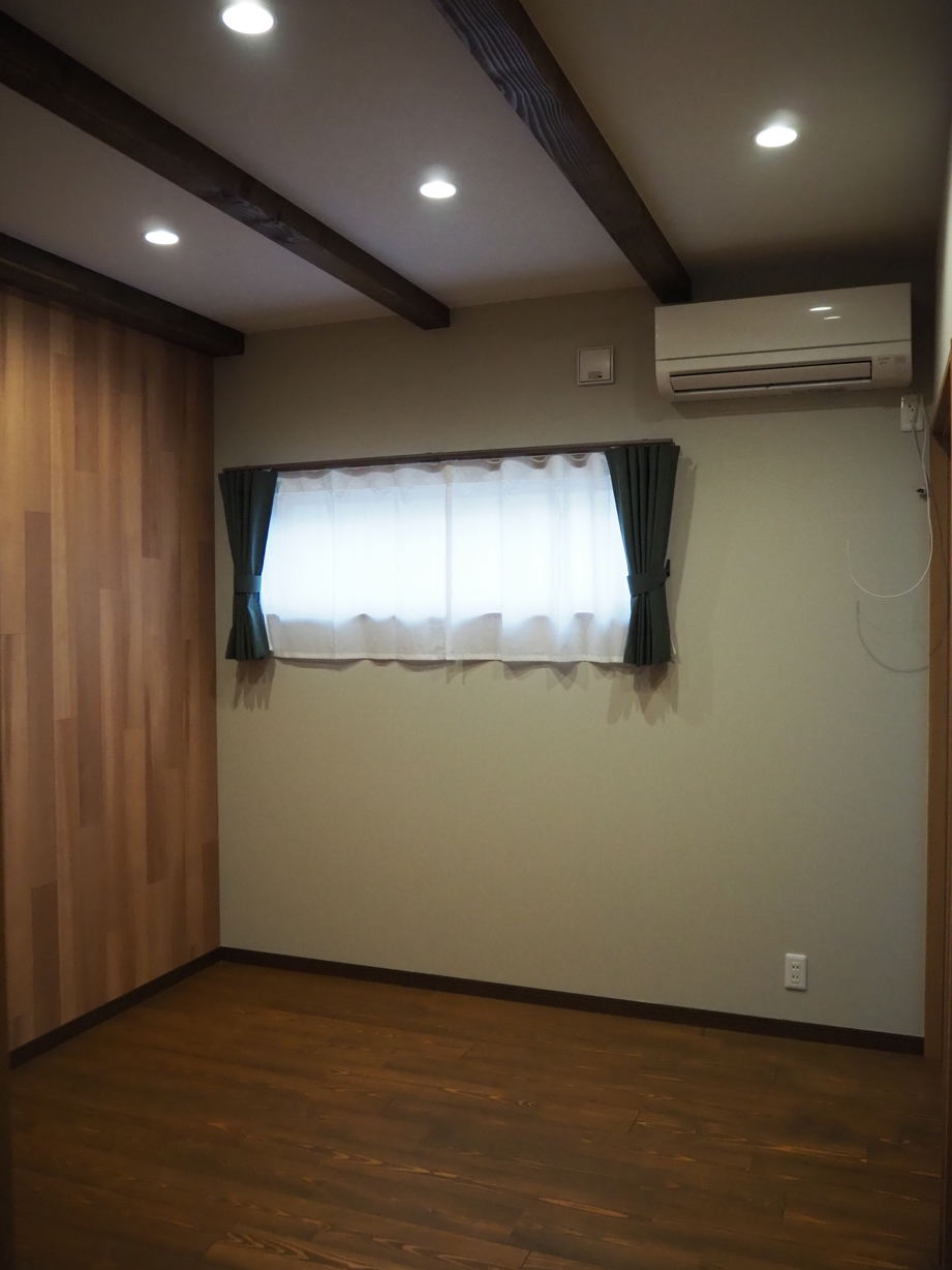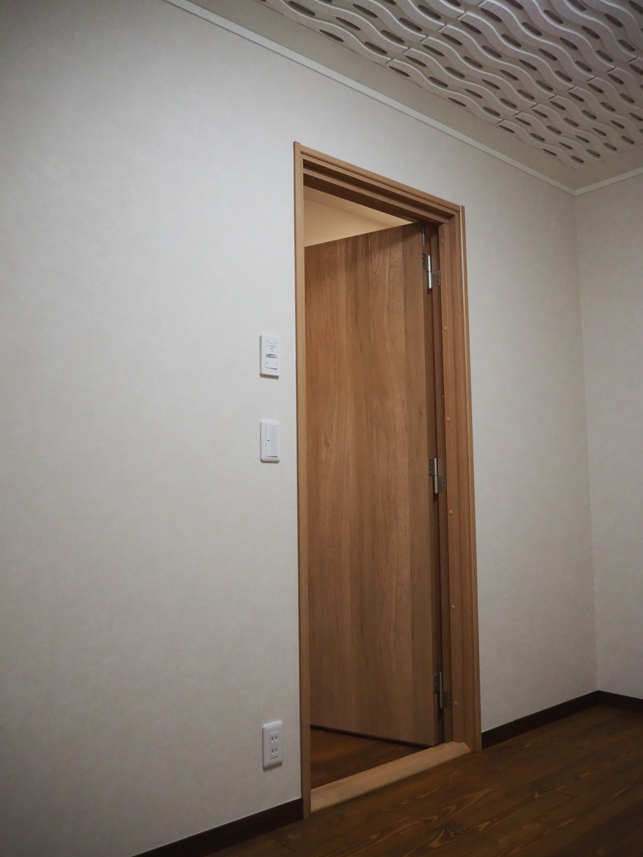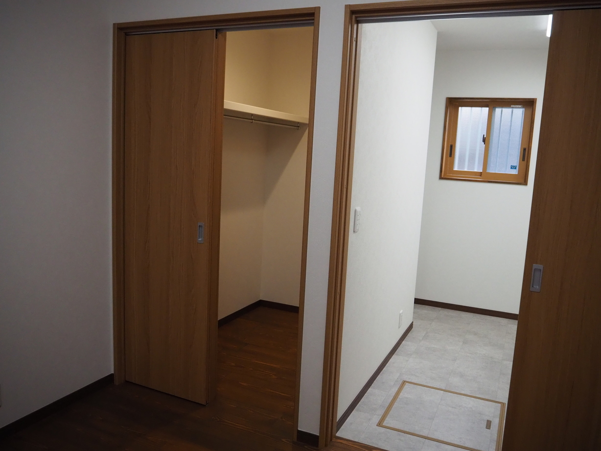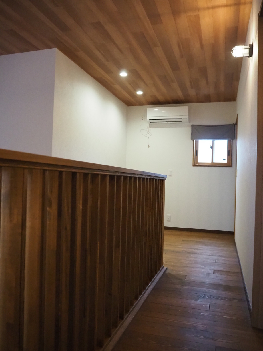各室は収納を要所に配し、木目で統一しながら、アクセントクロスで遊び心を添えました。